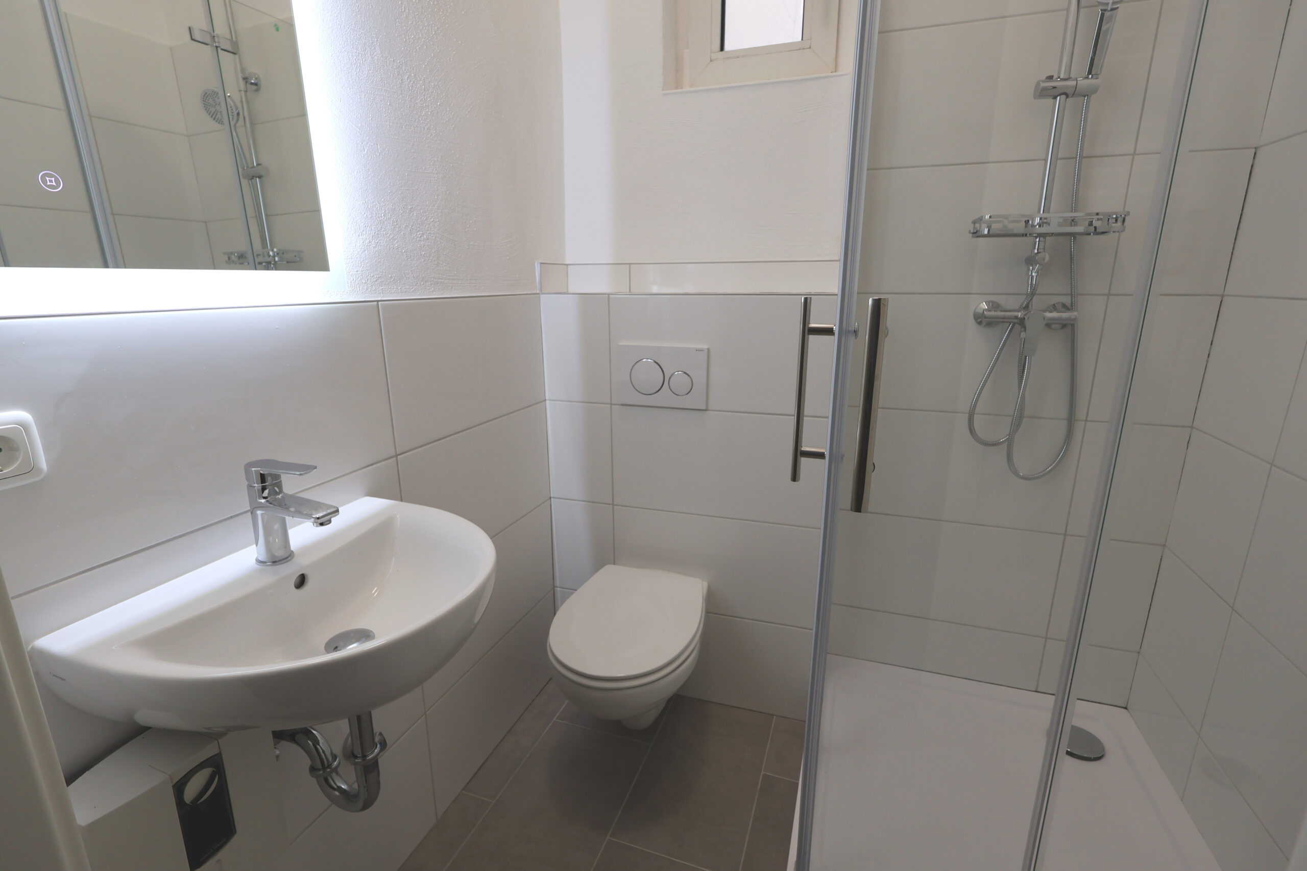 Küche inkl. Backofen und Herd, Modernes Badezimmer mit Regendusche und Fenster, Laminat Fußböden in den Wohnbereichen, Hellgraue Fließen im Badzimmer im modernem Stil, Hohe Zimmerdecken, Eigene Heizungstherme, Weiß verputzte Wände, Waschküche im Keller, Separater Kellerraum, Anschluss für Internet/ Kabelfernsehen vorhanden