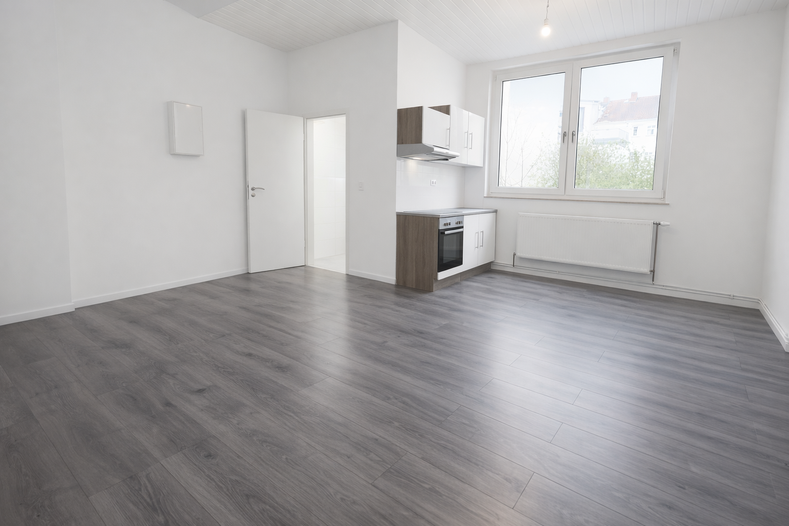 Modernes Wohnen im Herzen von Walle (Westend) Frisch sanierte 2-Zimmer-Erdgeschosswohnung mit Charme Willkommen in Ihrem neuen Zuhause! Diese frisch modernisierte Wohnung kombiniert zeitgemäßen Wohnkomfort mit einer unschlagbaren Lage im beliebten Bremer Westen. Ideal für Singles oder Paare, die das urbane Leben in einem gepflegten Umfeld suchen. Die Highlights auf einen Blick Zustand: Frisch saniert und modernisiert – Erstbezug nach Modernisierung. Wohnkonzept: Offenes, helles Wohnzimmer mit integrierter Küchenzeile. Badezimmer: Neues, modernes Design-Bad mit Fenster, Regendusche und LED-Wandspiegel. Komfort: Separates Schlafzimmer für optimale Privatsphäre. Haus: Sehr ruhiges und gepflegtes Wohnhaus. Objektbeschreibung Diese Erdgeschosswohnung in der Wartburgstraße besticht durch ihren durchdachten Grundriss und die hochwertige Ausstattung. Das Herzstück der Wohnung ist der großzügige Wohnbereich mit offener Küchenzeile. Die Küche ist bereits mit einem E-Herd und Backofen ausgestattet, sodass Sie direkt mit dem Kochen loslegen können. Das Badezimmer ist eine kleine Wellness-Oase: Dunkle Kontraste treffen auf helle Fliesen, abgerundet durch eine bodentiefe Regendusche und einen beleuchteten LED-Spiegel. Ein Fenster sorgt hier für natürliches Licht und gute Belüftung. Zusätzlichen Stauraum bietet ein eigener Kellerraum. Für Ihre Wäsche steht eine gemeinschaftliche Waschküche im Keller zur Verfügung. Miete und Nebenkosten: Kaltmiete 660,00 € Nebenkosten 110,00 € Gesamtmiete (exkl. Heizung/Strom) 770,00 € Hinweis: Die Kosten für Strom und Gas (Etagenheizung) sind nicht in den Nebenkosten enthalten und werden vom Mieter direkt mit dem Versorger abgerechnet. In den Nebenkosten enthalten: Treppenhaus- und Gehwegreinigung / Winterdienst Kaltwasser & Abwasser Müllabfuhr & Grundsteuer Gebäudeversicherung & Schornsteinfeger Hauswart & Gartenpflege Wartung der Heizungsanlage sowie Allgemeinstrom