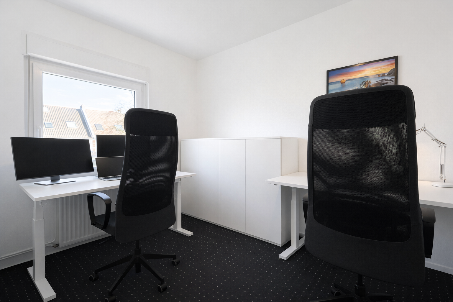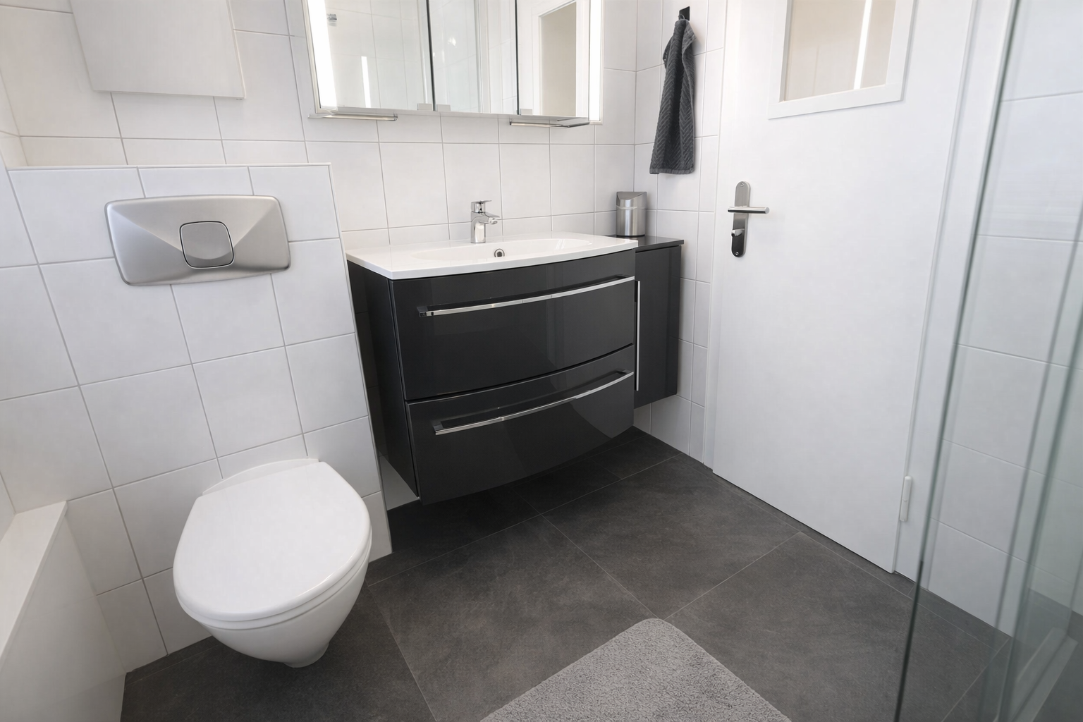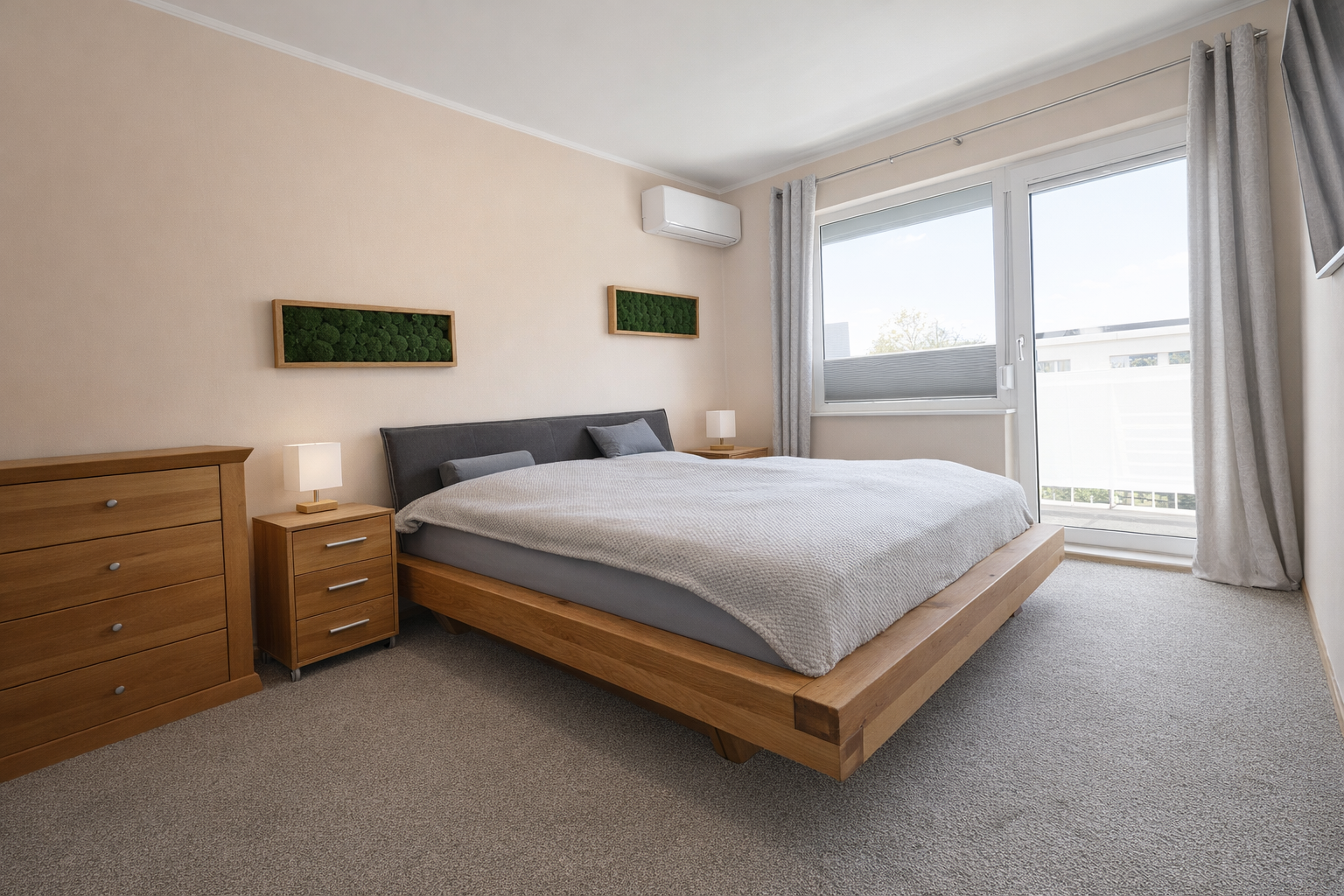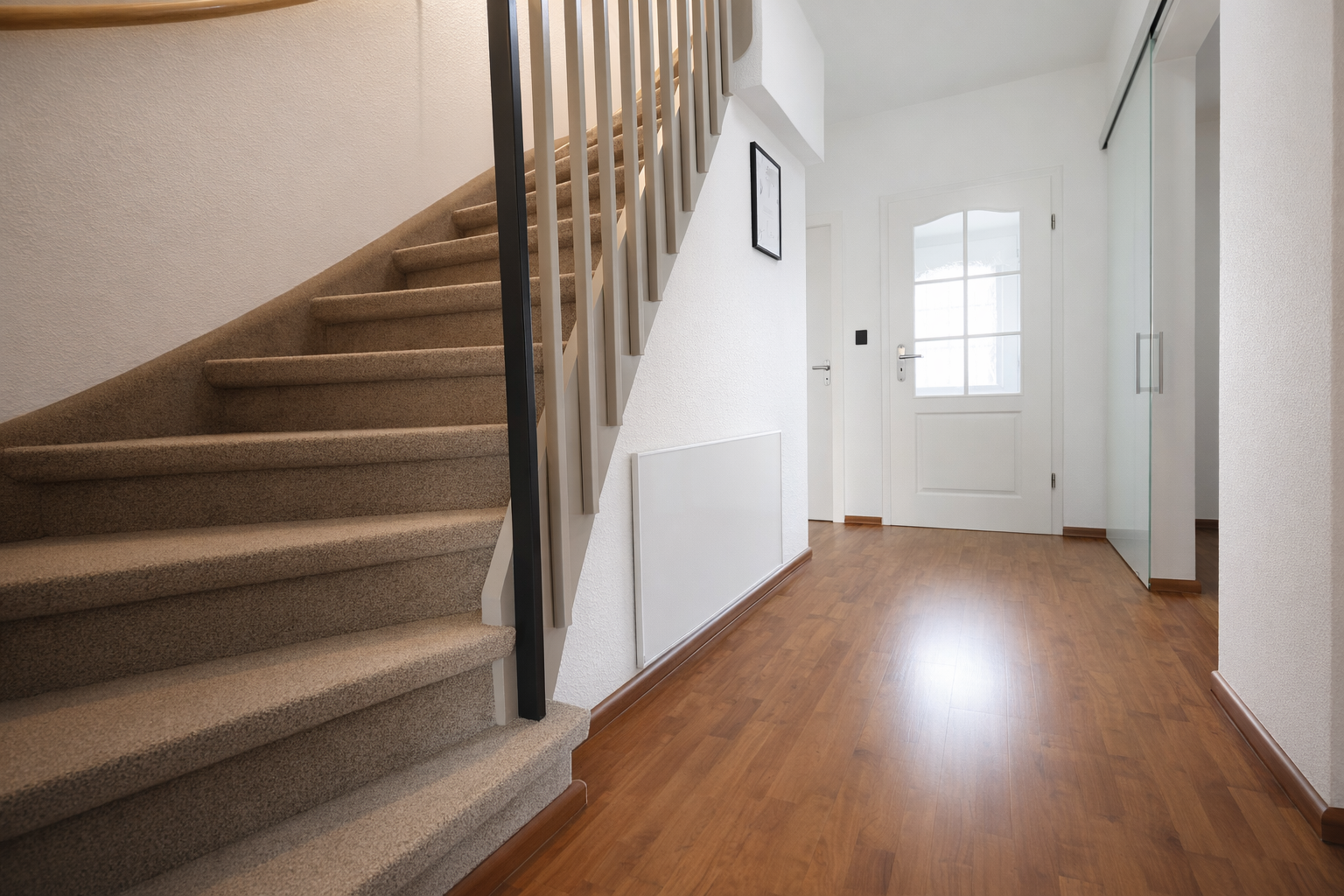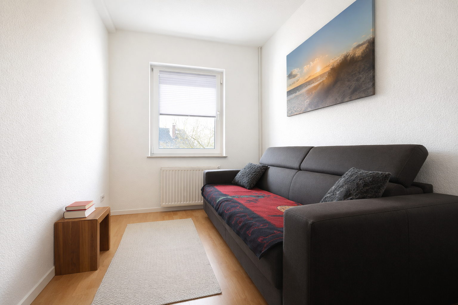 Im ersten Obergeschoss befinden sich die Schlafräume, ausgestattet mit gemütlichem Teppichboden. Das Badezimmer wurde erst 2025 aufwendig saniert. Die Fenster zur Gartenseite verfügen über neue Rollläden mit Insektenschutz (2024). Im Schlafzimmer garantiert eine Mitsubishi-Split-Klimaanlage (2023) auch im Hochsommer perfekten Schlaf.