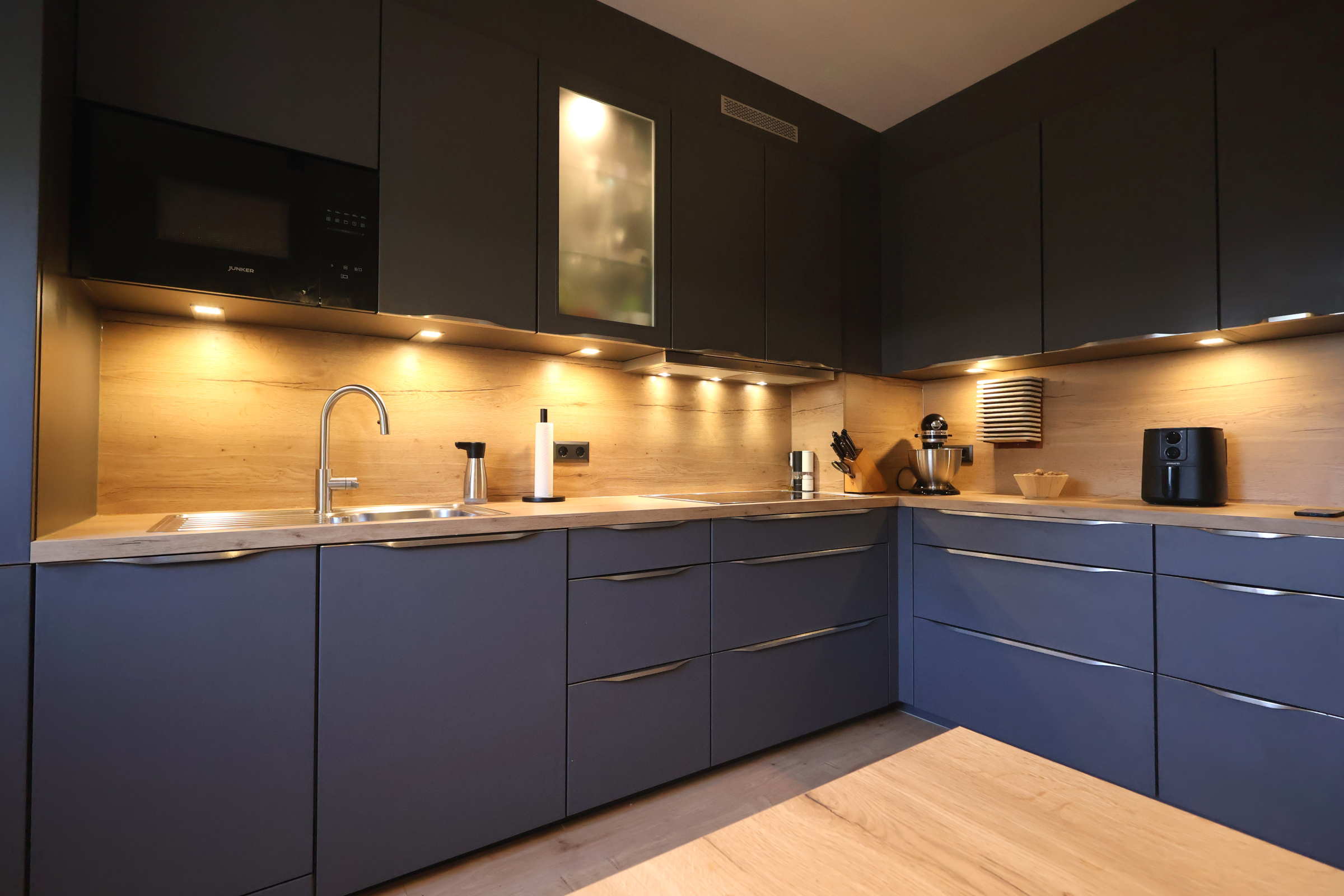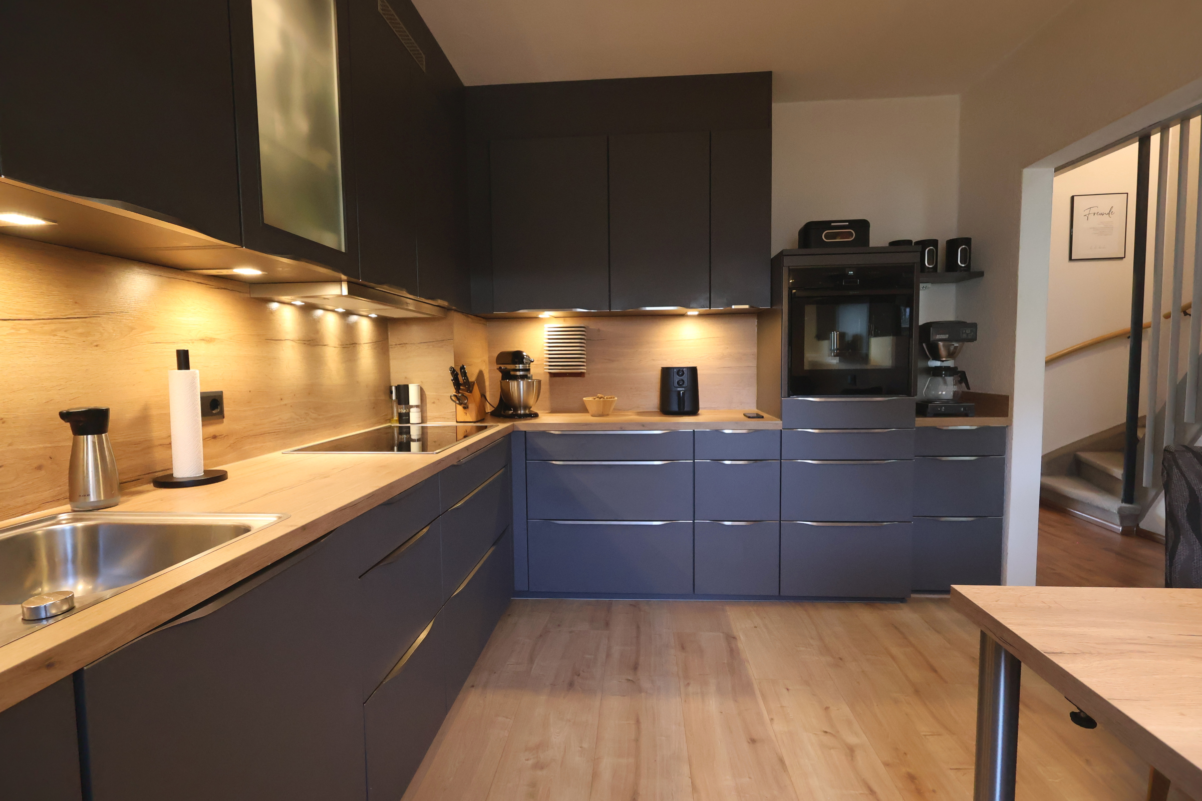 Das absolute Highlight ist die 2023 komplett modernisierte Küche: Eine maßgeschneiderte Nobilia-EBK mit hochwertigen Elektrogeräten lässt keine Wünsche offen. Das Gäste-WC wurde im selben Jahr ebenfalls modernisiert.